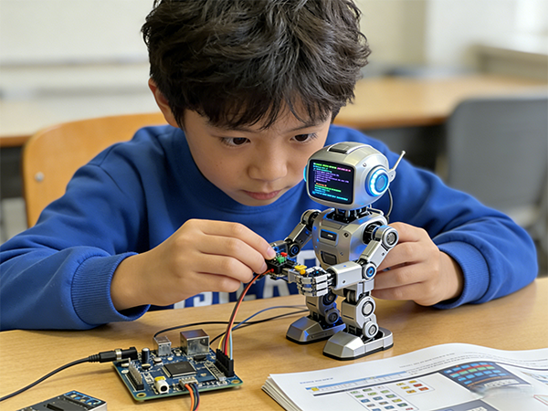 2.5-7 岁从实物化编程入手,结合生活常见传感器开展体验式学习;7-12 岁进阶至人工智能体的编程与设计,阶梯式构建 AI 能力体系,同步实现人工智能科普普及与人才培养筛选。